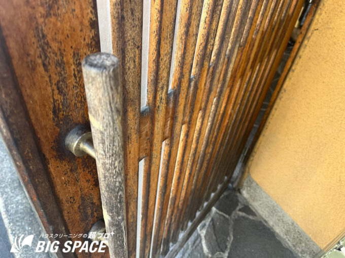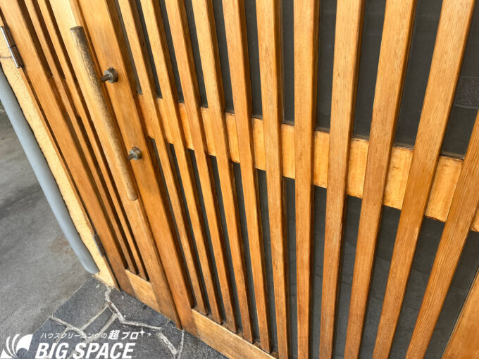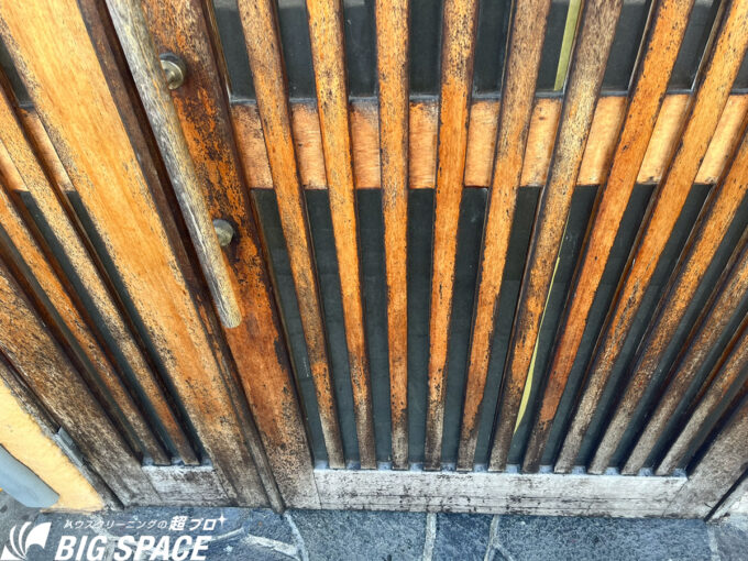 ・玄関白木部分の専用洗剤による丁寧な洗浄