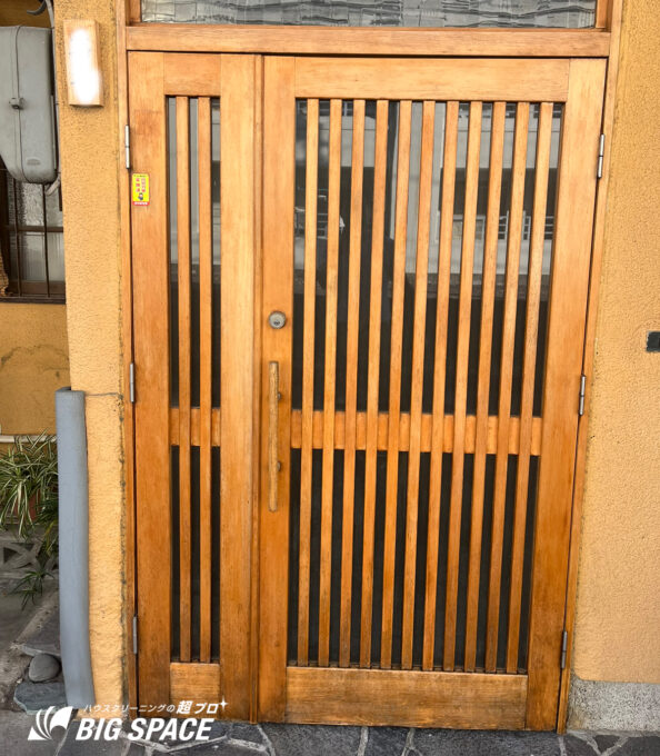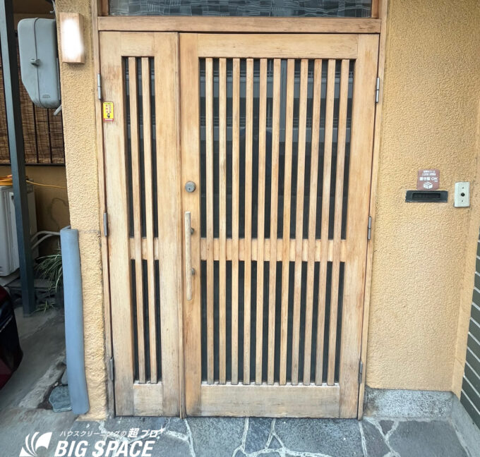 今回は、一宮市にお住まいの K様よりご依頼いただいた玄関ドア(ヒバ材)の白木洗い(美白洗浄)およびコーティング作業の様子をご紹介いたします。