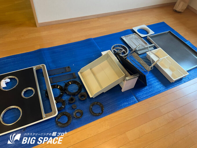 キッチンの油汚れや換気扇内部も分解清掃を行い、本来の清潔感を取り戻しました。