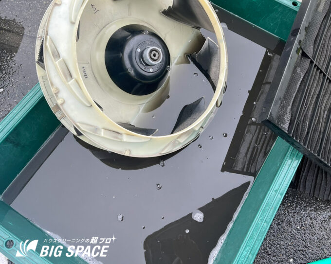 ドレンパンから出てくる洗浄水が真っ黒+キラキラ(鉄粉)!