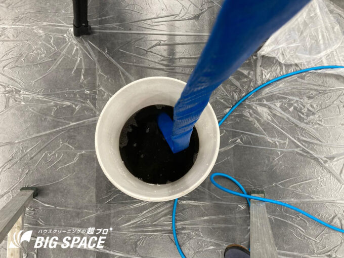 高圧洗浄を何度も繰り返し、ようやく透明な水になるまで徹底洗浄しました。