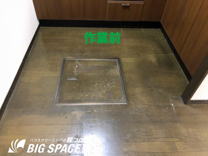 全体的に汚れがひどく 特にフローリングの剥離作業は、古いワックスが厚く完全ビルド状態。作業後は、見違えるほどスッキリ ピカピカに蘇りました