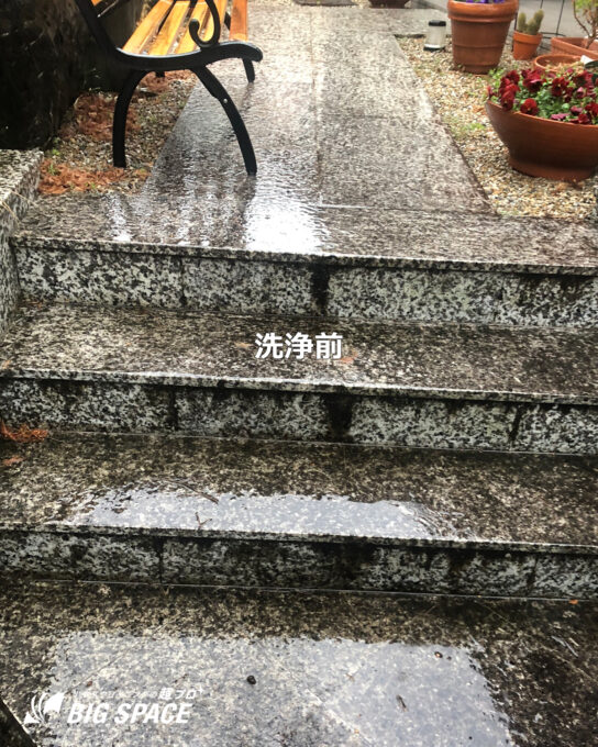 今回は、和風建築によくある玄関石材 天然石 御影石に 古く長くたまった汚れをしっかり洗浄していきます