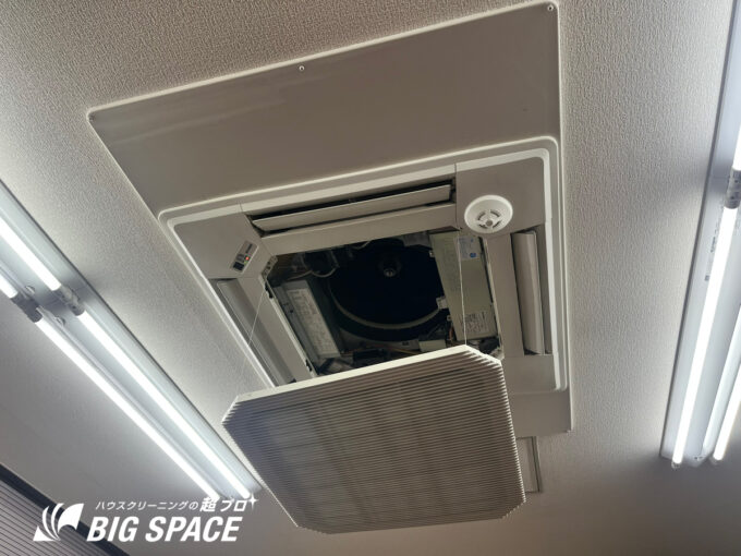 多くの経営者・施設管理者にとって、空調設備は「動いていて当たり前」の存在かもしれません。しかし、店舗兼オフィスにおいて主流である**天井埋込カセット形(以下、天カセ形)**は、その構造上、定期的なプロによる洗浄が「経営コスト」と「リスク管理」に直結します。